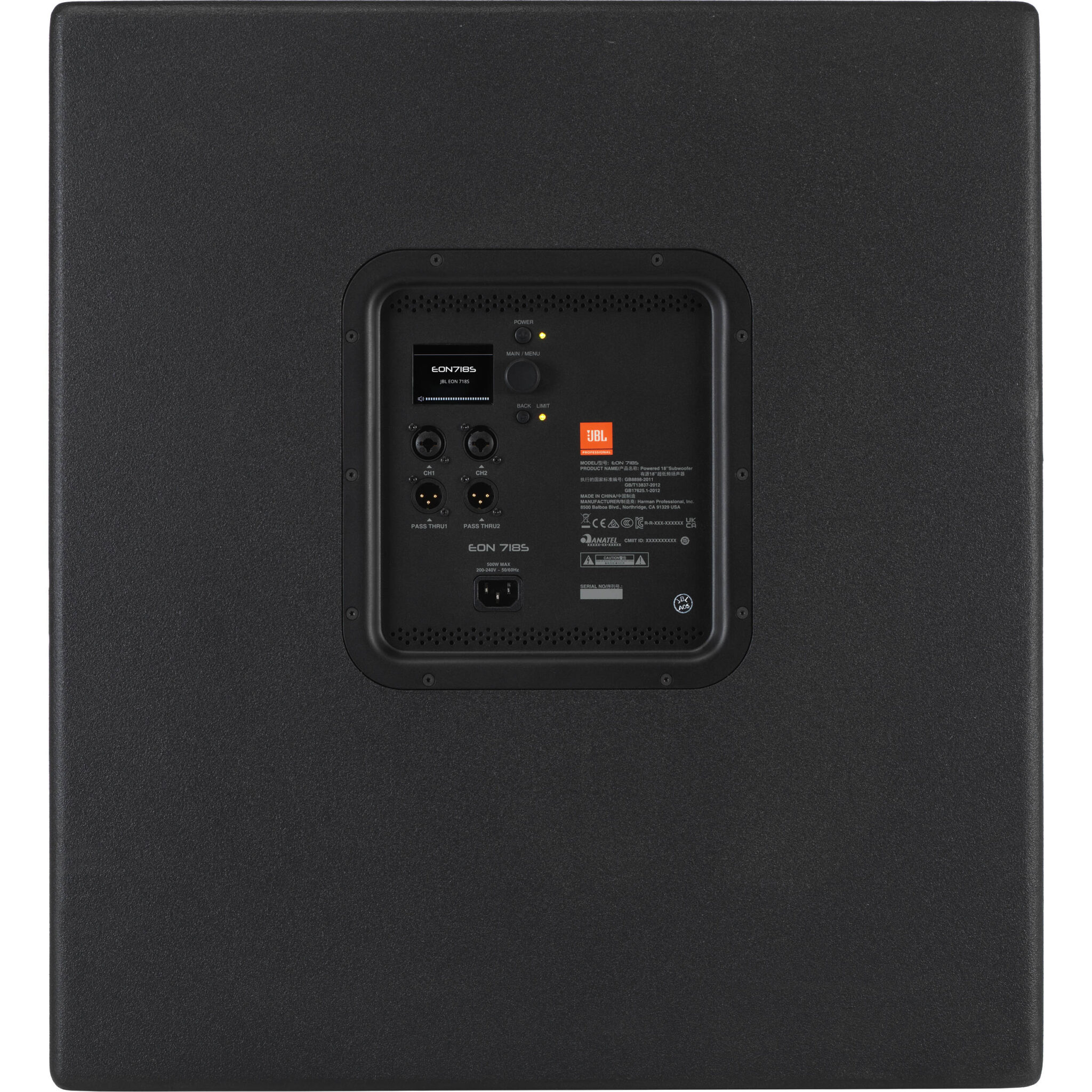 En el núcleo del JBL EON718S se encuentra un woofer de 18″ con imán de ferrita, desarrollado especialmente por el fabricante y alimentado por un eficiente amplificador de clase D que garantiza un sonido limpio, incluso a volúmenes elevados. Este subwoofer ofrece una respuesta de frecuencia que va desde los 31 hasta los 150Hz, con un nivel máximo de presión sonora (SPL) de 131dB. El usuario puede ajustar el punto de cruce a 80, 100 o 120Hz según desee. Una pantalla LCD situada sobre las tomas combo XLR/jack del panel posterior permite realizar ajustes en el ecualizador paramétrico, la polaridad, el delay y la supresión de realimentación. Además, estos parámetros también pueden ser controlados de forma remota desde un smartphone o una tablet utilizando la aplicación gratuita JBL Pro Connect.